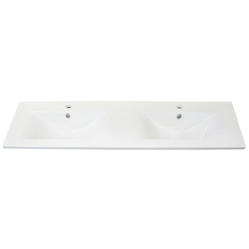Wil je graag een strakke, rechthoekige wastafel in je badkamer? Dan is de Differnz Dubbele Wastafel Style Wit 120x45x15 cm echt iets voor jou. Deze wastafel is 120cm breed en 45cm lang, bestaat uit 2 waskommen met ieder een overloop- en kraangat en is uitgevoerd in het makkelijk te onderhouden keramiek. Dankzij de rechthoekige vorm is deze wastafel uitermate geschikt voor minimalistische en moderne badkamerinterieurs. Zoek je bijpassende badkamermeubels? Kijk dan eens naar ons uitgebreide Style-assortiment met onder- en spiegelkasten in onder andere wit, donkergrijs en zwart. Met de bijgeleverde bevestigingsmaterialen is deze wastafel eenvoudig zelf te monteren. Kortom: een sterke, moderne wastafel voor in een minimalistisch interieur.