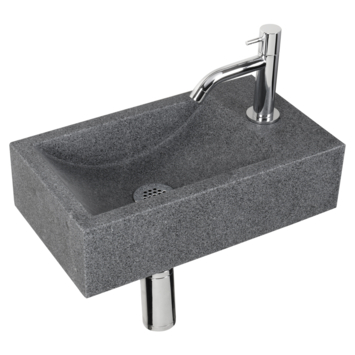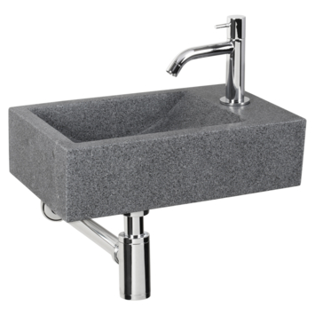 Op zoek naar een natuurlijke uitstraling binnen jouw badkamer of toiletruimte? Dan moet je deze fonteinset van Differenz zeker overwegen. De wasbak is gemaakt van natuursteen en past perfect binnen elke moderne ruimte. Door zijn compact formaat, namelijk 40x23x11cm, is deze fonteinset zeer geschikt voor de kleine badkamer of toiletruimte, maar ook in een grotere ruimte misstaat deze set niet. Het kraangat bevindt zich aan de rechterkant, daardoor staat deze set beter wanneer deze in een hoek is gemonteerd. Deze stijlvolle set wordt geleverd met een afvoer, sifon en koudwaterkraan. Houd er tijdens het schoonmaken rekening mee dat natuursteen beschadigd raakt bij gebruik van schuursponsjes en bijtende middelen. Ben je op zoek naar een moderne fonteinset die geschikt is voor iedere badkamer en toiletruimte? Dan is de Differenz Cheops fonteinset grijs graniet wat je zoekt.