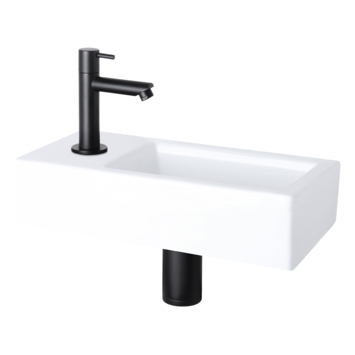 - Set inclusief zwarte kraan, sifon en afvoerplug