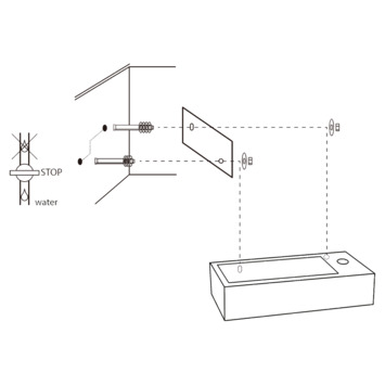 De kraan en de sifon zijn nietmeegeleverd. De fontein zelf is gemaakt van licht betonen 38,5x18,5x9cm groot.