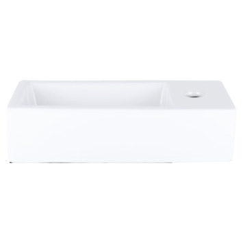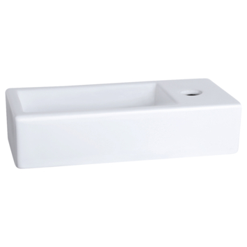 De kraan en de sifon zijn nietmeegeleverd. De fontein zelf is gemaakt van keramiek en 38,5x18,5x9cm groot.