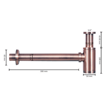 Breng je fonteinset in je toiletruimte in één stijl met de sifons van Differnz! Deze prachtig vormgegeven bekersifon monteer je eenvoudig. Het afvoer heeft een diameter van 5/4" en de afvoerbuis is 32 mm in doorsnede. Vanwege zijn mooie vormgeving en rood koperen afwerking, combineer je de Differnz sifon rood koper goed met een vrij hangende wastafel of fontein.