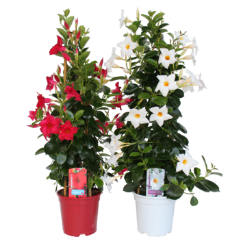 De Dipladenia is een prachtige plant die bekendstaat om zijn opvallende, klokvormige bloemen in diverse kleuren. Deze sierlijke plant is een ideale keuze voor binnen- en buitentuinen, en voegt een tropische flair toe aan elke ruimte. Met zijn weelderige groene bladeren en bloeiende pracht is de Dipladenia een echte blikvanger.