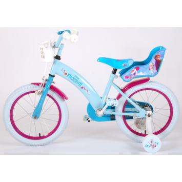 De Disney Frozen II kinderfiets 16 inch is de perfecte fiets voor elk kind dat als Elsa door het leven wil gaan. Met de afbeeldingen van Elsa, Anna en Olaf bevind je je helemaal in de wereld van Frozen. De fiets is in de kleuren van Frozen II en bestickerd met de hoofdrolspelers