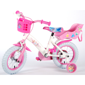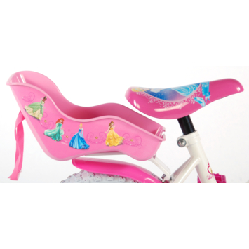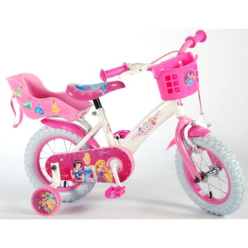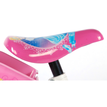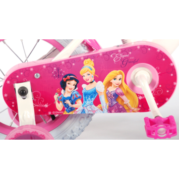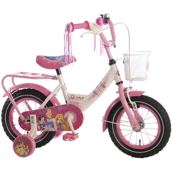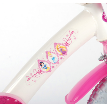 Disney Princess 12 inch meisjesfiets. Elk meisje heeft wel eens de film Princess of Assepoester van Walt Disney gezien. Elk meisje wil dan ook een echte Princess zijn, wat zeker gaat lukken op deze nieuwe mooie Disney Princess kinderfiets. Met stevige zijwieltjes en metalen mandje voor en slingertjes aan de handvatten. Deze fiets is voor 95% afgemonteerd, dus bijna fietsklaar. Wel zo gemakkelijk! Disney Official Licensed Product