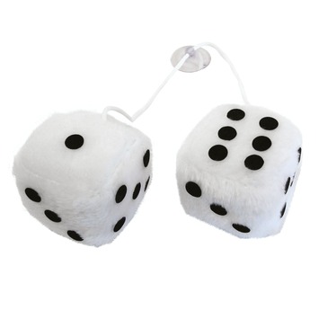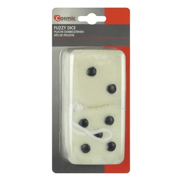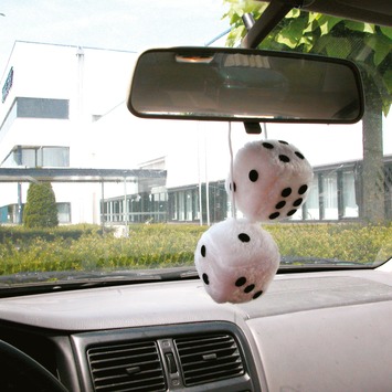 Fleur de binnenkant van uw auto op met de dobbelstenen auto pluche 2 stuks. De decoratie bestaat uit 2 dobbelstenen. De dobbelstenen zijn wit, bedrukt met zwarte stippen en gemaakt van knuffelzacht pluche. U bevestigt de zachte dobbelstenen auto pluche 2 stuks in een mum van tijd aan uw binnenspiegel. Doordat de pluche dobbelstenen universeel zijn, kunt u er nagenoeg iedere auto met een binnenspiegel mee decoreren. Kortom, met de fraaie dobbelstenen auto pluche 2 stuks worden uw autoritten nog leuker.