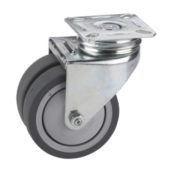 Het Zwenkwiel TPE is een topkwaliteit wiel wat bestaat uit een wiel van TPE (thermoplastisch elastomeer) op een kunststof velg. TPE wielen hebben een aantal belangrijke voordelen. Zo is de rolweerstand zeer gering, laten de wielen geen strepen achter op de vloer en zijn de wielen ongevoelig voor vuil op de ondergrond. Hierdoor zijn dit type wielen met name geschikt voor gebruik binnenshuis. Het wiel heeft een diameter van 75 mm waardoor dit een veel gebruikte maat is. Het wiel is dubbel uitgevoerd zodat het draagvermogen extra hoog is. Het wiel is gelagerd zodat het wiel soepel en geruisloos rolt. Het TPE wiel zorgt ervoor dat je er eenvoudig mee over allerlei verschillende vlakke ondergronden kunt rijden.