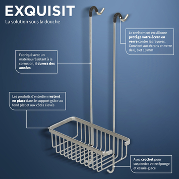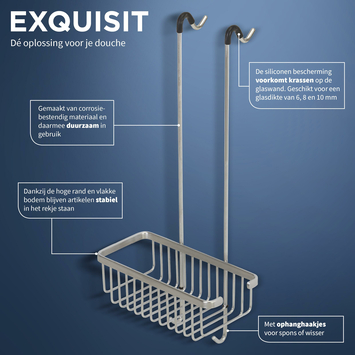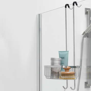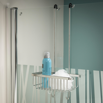 Prettig in gebruik, past prima over de douche wand en hangt op goede hoogte voor volwassenen.Geen gaten hoeven boren !