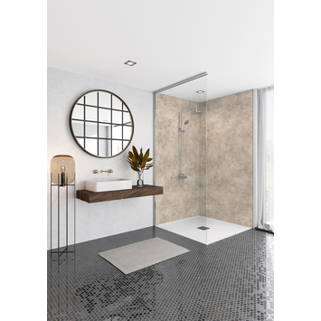 Met dit wandpaneel heeft u in een handomdraai de ruimte van uw douchecabine dichtgezet. Met de eenvoudige klikverbinding kunnen de panelen vrijwel naadloos in elkaar geschoven worden. De panelen zijn te verlijmen over bestaande tegels. Voor een strakke afwerkingen kunnen de randen afgewerkt worden met een aluminium profiel. Het oppervlak is beschikbaar in diverse kleuren en is kras- en kleurvast.