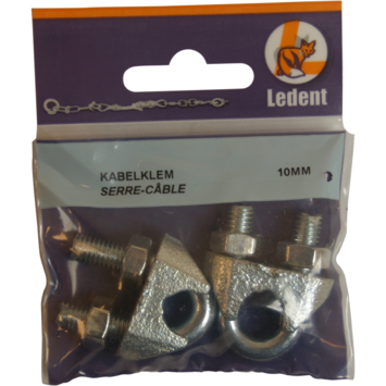Wil je een touw of draad doeltreffend blokkeren en vastklemmen? Gebruik dan de draadklem simplex verzinkt 10mm 2 stuks. Met deze klem creëer je snel en eenvoudig een verbinding die je later ook makkelijk kunt verwijderen. Deze draadklem is geschikt voor touwen en kabels van 10mm. Doordat de klem gemaakt is van verzinkt metaal, is hij extra beschermd tegen roestvorming wat bijdraagt aan een langere levensduur. Deze draadklem wordt verkocht per set van 2 stuks. Kortom: met deze draadklem zorg je ervoor dat je draad niet losschiet.