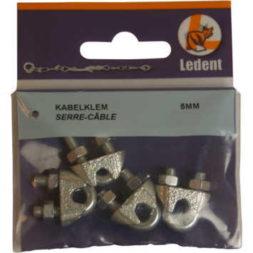 Wil je een draad doeltreffend blokkeren en vastklemmen? Dat maakt de draadklem verzinkt 5 mm 4 stuks mogelijk. Met deze klem creëer je snel en eenvoudig een verbinding die je later ook makkelijk kunt verwijderen. Deze draadklem is geschikt voor dunne touwen en kabels van 5mm. Doordat de klem gemaakt is van verzinkt metaal, is hij goed bestand tegen corrosie wat de levensduur van de draad verlengd. Deze draadklem wordt verkocht per set van 4 stuks, dus je hebt altijd een extra klem op voorraad. Kortom: met deze draadklem zorg je ervoor je staaldraad niet losschiet.