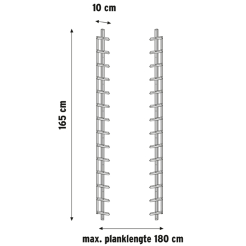 - Kan zowel horizontaal als verticaal gemonteerd worden met planken van max. 180 cm lang