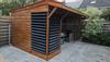Met onze draaibare lamellengeleiders tover je een tuinhouten overkapping in de tuin om van open ruimte met veel licht naar afgesloten privésfeer. Deze Jaloezie in de tuin heeft een lengte van 165 cm en is gemaakt van zwart gepoedercoat RVS. Voor het monteren gebruik je 14 planken van bijvoorbeeld geïmpregneerd grenenhout of voor een luxere uitstraling geschaafd douglas hout. Met deze lengte lamelgeleiders gebruik je 14 planken met een maximale lengte van 180 cm. Gebruik de planken naar keuze met een dikte van 16 mm of 18 mm en een breedte van 14 cm.