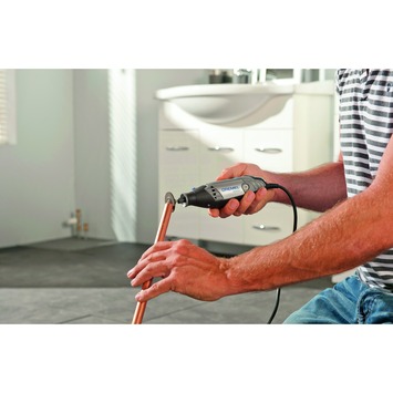 De Dremel Model 3000 inclusief 25 accessoires en koffer is een zeer betaalbare instapset, waarin de Dremel 3000 wordt aangeboden inclusief flexibele as en 25 superieure Dremel-accessoires in een handige opbergkoffer. De Dremel 3000 is een allround gereedschap voor een grote verscheidenheid aan klussen, zoals het doorslijpen van metaal, solderen, het graveren van potten, het maken van sieraden, het aanpassen van meubels en houtbewerking. De flexibele as is een ideaal hulpstuk voor precisiewerk of moeilijk bereikbare plaatsen. De accessoires zijn eenvoudig te verwisselen zonder gereedschap. Al met al biedt de Dremel Model 3000 inclusief 25 accessoires en koffer de iets veeleisendere gebruiker veel waar voor zijn geld.