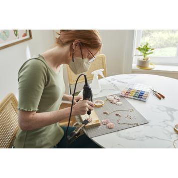 Dé Dremel allrounder met extra comfort: één gereedschap voor snijden, frezen, schuren, slijpen, graveren polijsten en reinigen op diverse materialen. De Dremel 3200 is licht en compact en gemakkelijk in gebruik zowel voor beginners als voor wat meer gevorderde klussers. Meteen bij het openen van de doos vind je alle nodige informatie om snel & makkelijk aan de slag te gaan, zelfs als beginner wat zorgt voor een geweldige unboxing ervaring! Ga direct aan de slag met de flexibele as en maar liefst 90 meegeleverde accessoires maar daarnaast is de Dremel 3200 compatibel met alle andere Dremel accessoires en hulpstukken, zodat je voor elke taak over het juiste gereedschap beschikt. De 3200 is ook vriendelijk voor het milieu: de kunststof buitenbehuizing van de tool is vervaardigd uit meer dan 65% gerecyclede materialen¿ en de milieuvriendelijke verpakking bestaat uit een volledig recyclebare doos en bevat geen polybags. Accessoires en hulpstuk meegeleverd bij deze Dremel set: 1 x Opspandoorn voor snijschijven (402) 1 x Opspandoorn voor polijstschijven (401) 1 x Draadborstel 19 mm (403) 5 x Polijstschijf 13 mm (414) 2 x Polijstschijf 26 mm (429) 1 x Polijstpasta (421) 1 x Schuurband en opspandoorn 13 mm korrelgrootte 60 (407) 2 x Schuurband 13 mm korrelgrootte 60 (408) 2 x Schuurband 13 mm korrelgrootte 120 (432) 25 x Schuurschijf korrel 180 (411) 25 x Schuurschijf korrel 240 (413) 20 x Snijschijf voor zwaar gebruik 24 mm (420) 1 x Aluminiumoxide slijpsteen 9,5 mm (932) 1 x Siliciumcarbide slijpsteen 3,2 mm (83322) 1 x Hogesnelheidsfrees (191) 1 x Boor (150) 1 x DREMEL® flexibele as (225)