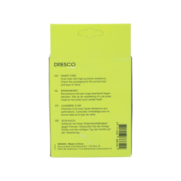 Dresco binnenband met een hoge weerstand tegen lekrijden. Geschikt voor onder