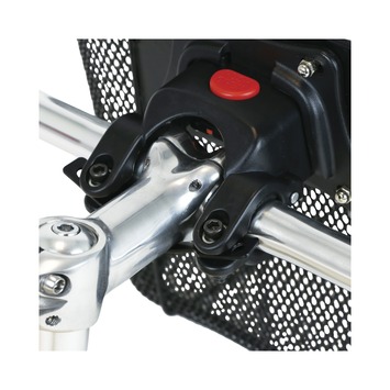 aan het stuur te bevestigen. Met een druk op de knop wordt de mand ontgrendeld