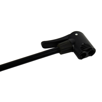 heeft een dubbele pompkop waarmee alle soorten fietsventielen (Dunlop, Presta