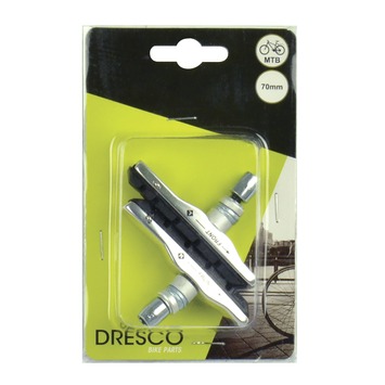 De Dresco remschoenen zijn ter vervanging van je versleten remblokken en speciaal geschikt voor V-Brake remmen. De Dresco remschoenen zijn geschikt om te monteren op de voor- of achterrem van de fiets. De remblokken hebben in alle weersomstandigheden, zowel droge- als natte weersomstandigheden een goede remkracht. De remschoenen hebben een lengte van 70mm worden geleverd per twee stuks.