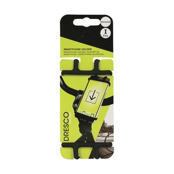 De zwarte smartphone fietshouder van Dresco is een handige houder waarmee u uw smartphone moeiteloos op het stuur van uw fiets meeneemt. De Dresco smartphonehouder is geschikt voor 4 tot 6 inch smartphone toestellen. De flexibele siliconen houder klemt het smartphone toestel op alle 4 hoeken stevig vast. Door het siliconen materiaal van de houder dempt deze schokken en trillingen.
