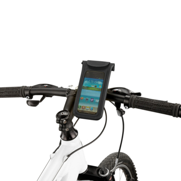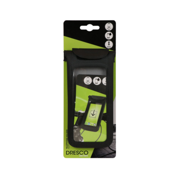 De Dresco Smartphone houder is nieuwe innovatieve spatwaterdichte hoes en houder voor op de fiets. De hoes beschermt de telefoon tegen regen, stof en vuil tijdens een fietsrit. De houder is makkelijk op ieder fietsstuur te monteren waarna de hoes in de houder klikt. Door de transparante hoes blijft de telefoon duidelijk leesbaar, ideaal als u de smartphone gebruikt als navigatie. Door het gebruik van TPU folie blijft het touchscreen van de telefoon bedienbaar. De smartphone is zowel in landscape als portrait mode te gebruiken. De hoes heeft een afmeting van 155x77x11 mm (LxBxH) en is hierdoor geschikt voor verschillende toestellen waaronder de Apple iPhone 6, S2, S3, S4, en S5  Het GSM toestel schuift u makkelijk in de hoes en wordt gesloten met de stevige klittenbandsluiting.
