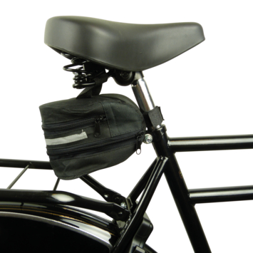 Prima tasje met voldoende ruimte voor klein gereedschap. eenvoudige bevestiging aan fietszadel.