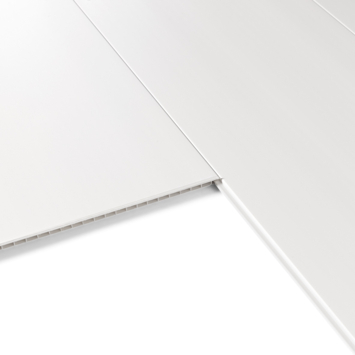 Dumaclip is het revolutionaire wand- en plafondsysteem van Dumaplast. Met het unieke Dumaclip-voegsysteem verbind je de panelen aan de lange en korte kant zonder gebruik te maken van dure en moeilijk te installeren verbindingsprofielen. Hierdoor is het mogelijk om eender welke lengte van een plafond of wand te overbruggen. Je kan moeiteloos de grootste oppervlaktes bekleden. Het eindeffect bij Dumaclip oogt mooi omdat de naden langs alle zijden op dezelfde wijze zijn afgewerkt. Dumaclip-panelen zijn volledig waterbestendig en volledig afwasbaar. De witte Dumaclip kan ook buiten geplaatst worden bij plafonds van carports, tuinhuizen en dergelijke. Wanneer je bij het plaatsen op het einde komt van een samengevoegde rij panelen, zaag je eenvoudig het laatste paneel op maat. Met dit afgezaagde stuk kan je eenvoudigweg de nieuwe rij beginnen, en zo de wand of plafond verder aanbouwen en vervolledigen.