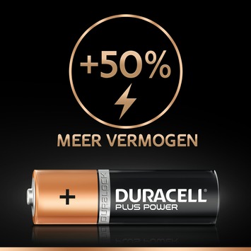 Duracell biedt verschillende batterijen voor elektronica die betrouwbare stroom vereisen. Duracell Plus Power AA-batterijen zijn veelzijdige alkalinebatterijen met tot 50% meer energie (Max. verschil vs Duracell Simply in de 2015 IEC-test van digitale camera's) , ideaal voor de voeding van alledaagse apparaten die net iets meer energie vereisen. Duracell Plus Power alkalinebatterijen zijn verkrijgbaar als AA, AAA, C, D, 4.5V en 9V. Met de Duralock-technologie kunt u uw Duracell-batterijen tot 10 jaar lang opslaan. Met deze batterijen - een product waarop u kunt vertrouwen - kunt u uw apparaten in alle vrijheid gebruiken. De Duracell Plus Power-batterijen zijn de ideale oplossing als u op zoek bent naar betrouwbare batterijen die lang meegaan voor apparaten zoals gemotoriseerd speelgoed, zaklampen, draagbare spelcontrollers, scheerapparaten, afstandsbedieningen, CD-spelers, enz.