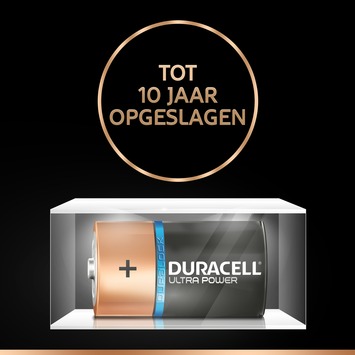 Duracell biedt verschillende batterijen aan voor elektronica die betrouwbare stroom vereist. Duracell Ultra Power C-batterijen zijn alkalinebatterijen ideaal voor het voeden van al uw apparaten, met betere prestaties voor apparatuur die veel stroom vereisen. Duracell Ultra Power alkaline batterijen zijn onze meest geavanceerde batterijen (vs alkaline AAA/C/D-batterijen) en zijn beschikbaar als AA, AAA, C, D en 9V. Met de Powercheck-technologie kunt u gemakkelijk zien hoeveel energie elke batterij nog bevat, zodat onnodige onderbrekingen kunnen worden vermeden en u uw batterijen opnieuw kunt gebruiken in apparaten die minder energie nodig hebben, zelfs wanneer ze niet meer werken in apparaten die veel energie verbruiken (houd batterijen bij elkaar en meng ze niet met andere ongebruikte batterijen in het apparaat). Druk op de witte stippen aan beide uiteinden van de batterij en zie hoeveel energie uw batterijen nog bevatten. Met de Duralock-technologie kunt u uw Duracell-batterijen tot 10 jaar lang opslaan. Deze batterijen zijn het beste alkalische artikel van Duracell voor apparaten met een hoog energieverbruik, zoals digitale camera, flits, speelgoed of boxen, en zijn natuurlijk ook geschikt voor apparaten zoals gemotoriseerd speelgoed, zaklampen, draagbare controllers, scheerapparaten, cd-spelers, tandenborstels en andere producten.