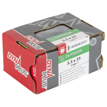 Zoek je een multifunctionele schroef met een torx-aandrijving voor gebruik buitenshuis? Ga dan voor deze Dynaplus Schroef Universeel Platkop AR coating TX-15 3.5X25 150 Stuks. De universeelschroef, ook wel spaanplaatschroef genoemd, is veruit de meestgebruikte schroef voor hout en plaatmateriaal. Deze schroef is afgewerkt met een platkop, wat inhoudt dat hij een taps toelopend gedeelte onder de kop heeft die mooi in het materiaal wegzakt. Deze Dynaplus-schroef is gemaakt van gehard carbonstaal met daaroverheen een gepatenteerde Anti-Roest-coating, waardoor de schroef maar liefst 2x zo sterk is als roestvaststalen schroeven. De schroef heeft een zespuntige torxkop van het type T20. Je kunt hem dus met een torx-bitje of schroevendraaier indraaien, die bekend staan om hun goede grip en lage indraaiweerstand. Voor extra schroefgemak is deze Dynaplus-schroef voorzien van een extra waxlaag en heeft hij een speciale 'cross-section' aan de punt, dat splijten van hout tijdens het inschroeven voorkomt. Dit product is bedoeld voor gebruik buitenshuis en wordt verkocht per 150 stuks, dus je hebt altijd een schroef achter de hand. Kortom: optimaal schroefgemak buitenshuis met deze universele schroef van Dynaplus.