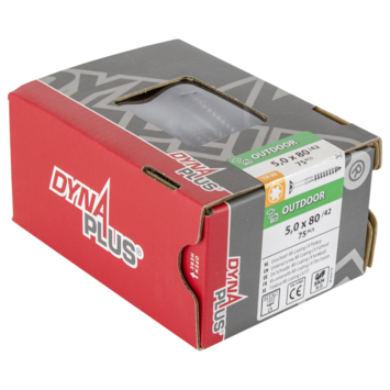 Zoek je een multifunctionele schroef met een torx-aandrijving voor gebruik buitenshuis? Ga dan voor deze Dynaplus Schroef Universeel Platkop AR coating TX-25 5.0X80/42 75 Stuks. De universeelschroef, ook wel spaanplaatschroef genoemd, is veruit de meestgebruikte schroef voor hout en plaatmateriaal. Deze schroef is afgewerkt met een platkop, wat inhoudt dat hij een taps toelopend gedeelte onder de kop heeft die mooi in het materiaal wegzakt. Deze Dynaplus-schroef is gemaakt van gehard carbonstaal met daaroverheen een gepatenteerde Anti-Roest-coating, waardoor de schroef maar liefst 2x zo sterk is als roestvaststalen schroeven. De schroef heeft een zespuntige torxkop van het type T20. Je kunt hem dus met een torx-bitje of schroevendraaier indraaien, die bekend staan om hun goede grip en lage indraaiweerstand. Voor extra schroefgemak is deze Dynaplus-schroef voorzien van een extra waxlaag en heeft hij een speciale 'cross-section' aan de punt, dat splijten van hout tijdens het inschroeven voorkomt. Dit product is bedoeld voor gebruik buitenshuis en wordt verkocht per 75 stuks, dus je hebt altijd een schroef achter de hand. Kortom: optimaal schroefgemak buitenshuis met deze universele schroef van Dynaplus.