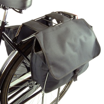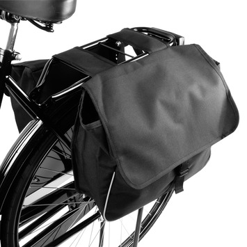 De fietstas Dubbel is een dubbele fietstas. Doordat de ruime fietstas is gemaakt van waterdicht en sterk nylon heeft deze betrouwbare fietstas een lange levensduur. De fietstas is voorzien van handige verstelbare bandjes en plastic haken. Zo gaat u goed voorzien op weg. Kleur: zwart.