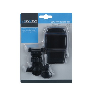 Met deze GSM/PDA houder heeft u uw mobiele telefoon of PDA ook gedurende het fietsen direct bij de hand. Bovendien kunt u dankzij de 360° draaiende houder uw GSM en PDA gebruiken als navigatie. U bevestigt de houder op eenvoudige wijze aan het stuur van uw fiets. Kleur: zwart.