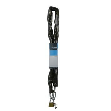 Met dit Dyto kettingslot haalt u een betrouwbaar slot in huis. Het slot is gemaakt van gehard staal, wat moeilijk door te knippen is. Het slot sluit door middel van een stevig hangslot. Dankzij de plastic laag voorkomt u bovendien beschadigingen aan uw fiets, scooter of aanhangwagen. Inclusief 3 sleutels. Kleur: zwart.