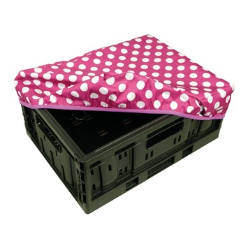 De Bagagekrat overtrek is een trendy afdekhoes voor een bagagekrat, gemaakt van waterafstotend polyester. Door dit overtrek te gebruiken blijven uw bagagekrat en spullen ook gedurende regen en slechte weersomstandigheden droog en beschermd. U plaatst de hoes eenvoudig over kratten van diverse afmetingen dankzij de elastische rand. Afmeting: 40x30x17cm. Kleur: roze/wit.