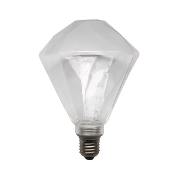Zoek je een opvallende lamp? Denk dan eens aan Diamant helder + fitting. Laat je niet om de tuin leiden, want deze diamantvormige lamp bestaat alleen uit het omhulsel en geeft dus zelf geen licht. Hiervoor heb je een aparte lamp nodig, namelijk Handson LED 4W E27 400LM 2000K (met een kleine fitting). Wanneer deze lamp in het diamantvormige omhulsel zit, heeft hij een lichtopbrengst van 400 lumen en geeft hiermee sfeervol licht af. Ideaal om lekker bij te tafelen of als sfeerverlichting in je keuken. Kortom: de perfecte lamp voor in een trendy en modern huis.