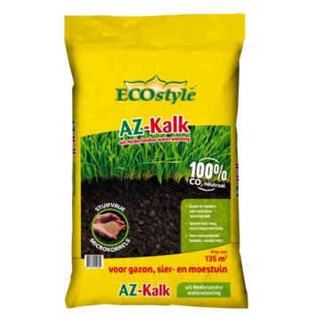 Voor een betere PH-waarde van de grond gebruik je Ecostyle AZ-kalk. Een betere zuurgraad van de grond betekent namelijk mooiere en gezondere planten. De kalk is 100% stuifvrij, werkt tot wel 4 maanden lang en is eenvoudig zelf te verwerken. De dosering afhankelijk van de zuurgraad. Gebruik voor normale onderhoudsdosering 1 kg per 10 m2. Kortom: kalk voor een rijk bodemleven.