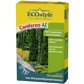 Een 100% natuurlijke meststof voor gezonde hagen, zoals coniferen, daarvoor moet je Ecostyle coniferen-AZ 1 kg hebben. Deze meststof bevat toegevoegde bodemschimmels, een stof die een rijk bodemleven stimuleert. Daarnaast zit in deze mest de zogenoemde RhizaMax®-wortelactivator, een element dat zorgt voor een goede voedingsbodem en voor 9x meer wortelbereik. Dankzij de extra magnesium en sporenelementen krijgen je heggen extra groene bladeren. Kortom: voor mooie, gezonde hagen.