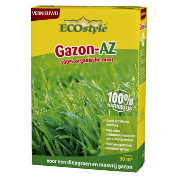 Wil je een gezond en diepgroen gazon? Ga dan voor de Ecostyle Gazon-AZ. Deze gazonmest zit boordevol het gepatenteerde ProtoPlus, een stof met het essentiële micro-organisme protozoa dat zorgt voor meer gunstige bodembacteriën. Hierdoor wordt jouw gras sterker en is het beter bestand tegen ziekten en plagen. Aangezien Gazon-AZ binnen twee dagen onder andere mosresten en grasmaaisel afbreekt, wat vervolgens weer als voeding dient voor de grond, zorgt deze gazonmest voor een geheel organische kringloop. Deze mest geeft voeding voor 120 dagen. Voor 10 m2 grond gebruik je 750 gram gazonmest. Kortom: voor een beter en gezonder gazon.