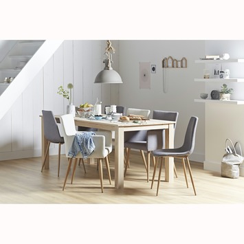 Een stijlvolle eetkamerstoel? Dan zit je met eetkamerstoel Bo 2st ecru stuks goed! De eetkamerstoelen, die geleverd worden als set van 2 stuks, zijn uitermate geschikt om aan jouw eetkamertafel te schuiven. De stoelen hebben een zithoogte van 47 cm en de leuninghoogte is 66 cm en zijn grijs van kleur. Zowel het zitgedeelte als de rugleuning van eetkamerstoel Bo 2st ecru is ergonomisch vormgegeven. Op de stoelen kun je dan ook gezellig natafelen. De eetkamerstoel heeft een stoffen zitting in de kleur ecru met houtlook metalen poten. Dit maakt de stoel niet alleen stabiel en robuust, ook ziet het er fraai uit. Kortom: optimaal zitcomfort in jouw eetkamer creëer je met eetkamerstoel Bo 2st ecru.