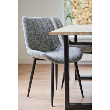 De eetkamerstoel Brian is een gestoffeerde stoel met verticale stiksels. De zitting loopt aan de zijkanten licht omhoog, wat hem een heerlijk zitcomfort geeft. Ideaal om lang na te tafelen! De stoel is verkrijgbaar in het blauw, grijs, warmgrijs of warmgroen.