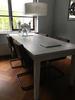 Prachtige bekleding. Mooi warm kleurtje. Zitten lekker. Ik ben vrij lang (1.86m) maar kan goed zitten op deze stoel, niet dat ik met m'n knieën in m'n nek zit. Makkelijk in elkaar te zetten. Enige nadeel is dat als je te veel naar voren zit, wat meer op het puntje, dat de stoel dan snel naar voren wil kantelen. En dat de stoelen per 2 verpakt zitten, dus een setje van 2 cognac en 1 bruin/grijs is niet mogelijk.