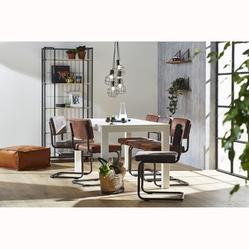 Decoreer je huis met deze stoere en moderne stoelen. Geïnspireerd op het wereldbekende Thonet-stoelontwerp van architect Marcel Breuer, is deze eetkamerstoel Jalmar cognac 2 stuks een fijne toevoeging aan je interieur. Beide stoelen bestaan ieder uit slechts 3 onderdelen, namelijk een metalen frame en een zit- en rugvlak van kunststof, dus makkelijk zelf in elkaar te zetten en schoon te maken. Met een zithoogte van 48cm is deze stoel ook prettig voor de lange mensen onder ons. Deze Jalmar-fauteuil is ook verkrijgbaar in het vintage bruin. Kortom: verhoog de industriële sfeer in je eetkamer met deze moderne, cognackleurige stoelen.