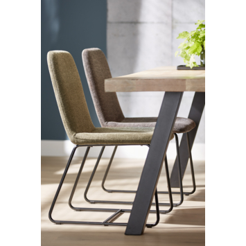 De eetkamerstoel Joanne is een elegante eetkamerstoel met een tijdloze uitstraling door de rustige kleuren. De zitting van de eetkamerstoel is gestoffeerd en is beschikbaar in de kleuren donkergrijs en warmgroen. De poten zijn gemaakt van zwart metaal.