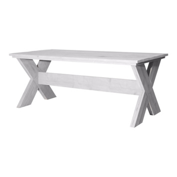 De eettafel Ingeburg in wit steigerhout is een ideale keuze voor een stijlvolle en stevige tafel in je tuin of op je terras. De rechthoekige tafel van 95 cm bij 200 cm biedt plaats aan 6 personen, waardoor hij perfect is voor familiediners, borrels of andere gezellige momenten in de buitenlucht. Het steigerhout heeft een frisse witte kleur die zorgt voor een moderne en lichte uitstraling in elke buitenruimte.
