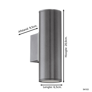 Deze Eglo buitenlamp Riga 2-lichts is met zijn strakke vormgeving en in de antraciet uitvoering een blikvanger aan je muur. Zijn 240 lumen schijnt hij zowel naar boven als naar beneden. Met de bijgeleverde energiezuinige LED lichtbronnen verlicht je jouw voordeur of terras op stijlvolle wijze. Deze lamp is zeer geschikt om in meerdere aantallen naast elkaar te plaatsen.