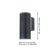 Deze Eglo buitenlamp Riga is met zijn strakke vormgeving en de uitvoering in het antraciet een blikvanger aan je muur. Zijn 240 lumen richt deze lamp naar beneden. Met de bijgeleverde energiezuinige LED lichtbron verlicht je jouw voordeur of het pad langs de schuur op stijlvolle wijze. Deze lamp is zeer geschikt om in meerdere aantallen naast elkaar te plaatsen.