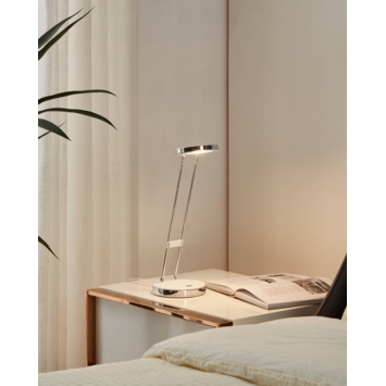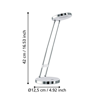 Deze witte chroom Eglo bureaulamp Gaxo is een stijlvolle LED-lamp. De lamp is gemaakt van kunststof en staal en verspreidt zijn licht van 220 lumen gelijkmatig over het gewenste oppervlak. De Gaxo kan draaien op zijn armatuur en ook de hoogte is aan te passen. Deze moderne lamp met geïntegreerde LED is ook uitgevoerd in zwart.
