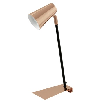 De Eglo bureaulamp Travale wordt geleverd inclusief energiezuinige GU10 LED lichtbron. Deze bureaulamp is een goede aanvulling op de basisverlichting voor een optimaal verlichte werkplek. De kop van de lamp is richtbaar zodat je de lichtstraal naar behoefte kunt afstellen. De bureaulamp is gemaakt van staal en is afgewerkt in de kleuren koper en zwart. De lamp heeft een exclusieve uitstraling. Hierdoor is de Eglo bureaulamp Travale een echte aanvulling op jouw stijlvolle werk- of woonkamer.