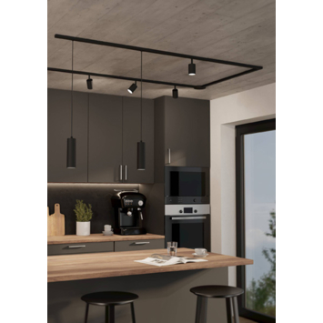 De EGLO EasyTrack railverlichting hanglamp pendant 10W GU10 fitting zwart is ontworpen als aanvullende hangverlichting binnen het tracksysteem. Met de GU10-fitting kun je eenvoudig een passende lichtbron plaatsen voor gericht licht boven bijvoorbeeld een eettafel, zitplek of werkblad. Het zwarte ontwerp sluit goed aan bij moderne woonstijlen en vormt een nette toevoeging aan iedere lichtopstelling.